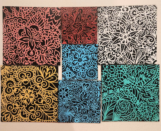 These pieces are really fun for me to make because they bring together two things I love: expressive color and small detailed shapes. I don’t plan them too strictly, I let the flowers build on each other and follow whatever direction feels right in the moment. That’s why each painting ends up with its own personality and flow.