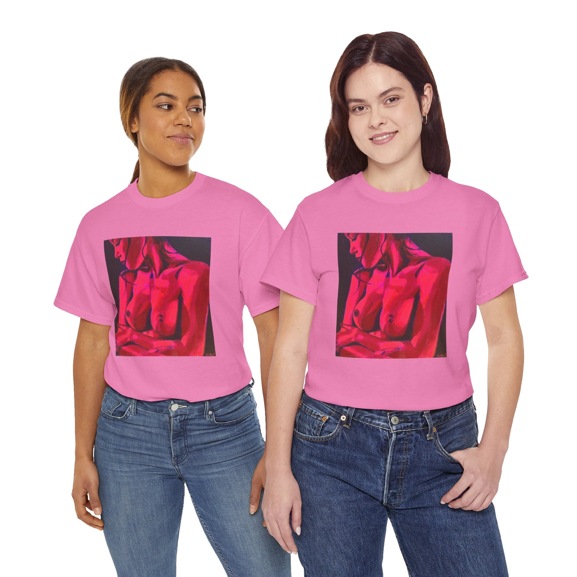 SEO: bold art T-shirt, unique graphic tee, sensual art shirt, contemporary art apparel, sexy, erotic, colorful, magenta, pink